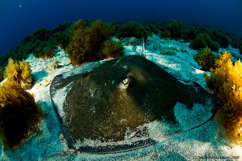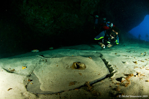 During each dive, large stingrays are visible. Barrel sponges are very common.